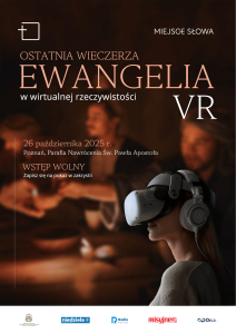 - Fundacja Miejsce Słowa zaprasza na pokaz filmu Ostatnia Wieczerza w ramach Ewangelii w wirtualnej rzeczywistości, który będzie 10, g. 9:00 – 15:30 w naszej salce. Specjalna technologia nagrywania umożliwia oglądanie obrazu w 360 stopniach. Daje to wrażenie uczestnictwa w wydarzeniach sprzed dwóch tysięcy lat. Zakładając dedykowane okulary, odbiorca jest w stanie poczuć się, jakby był obecny w wieczerniku z Jezusem i Apostołami. Minimalny wiek uczestników 13 lat. Zapisy na konkretne godziny w zakrystii lub w biurze. Doświadczenie trwa 15 minut. Nie ma opłat za wstęp. Natomiast uczestnicy mają możliwość złożenia dowolnej ofiary na produkcję kolejnego filmu na podstawie Ewangelii.